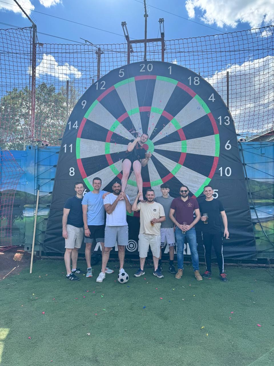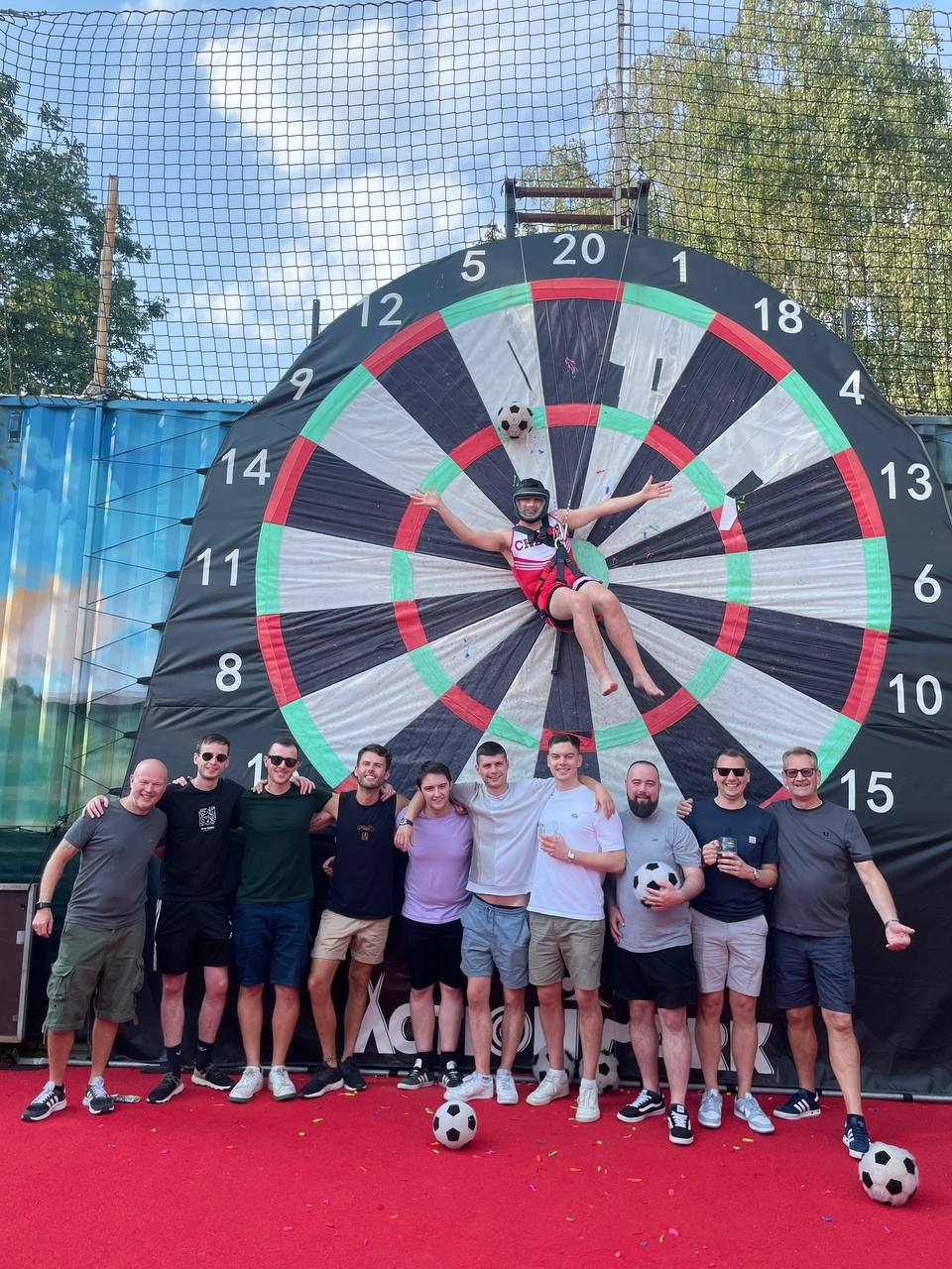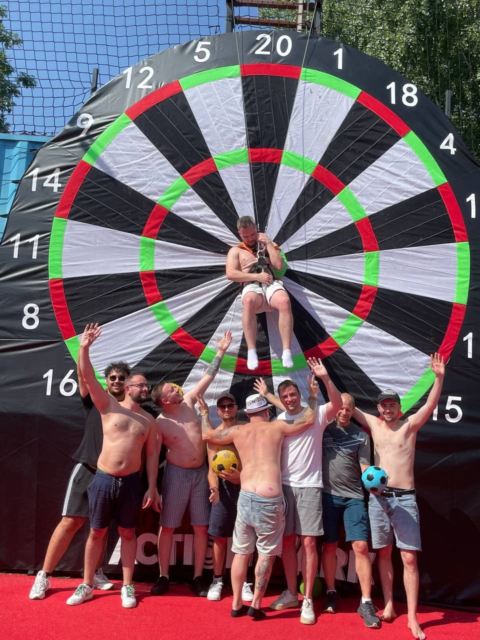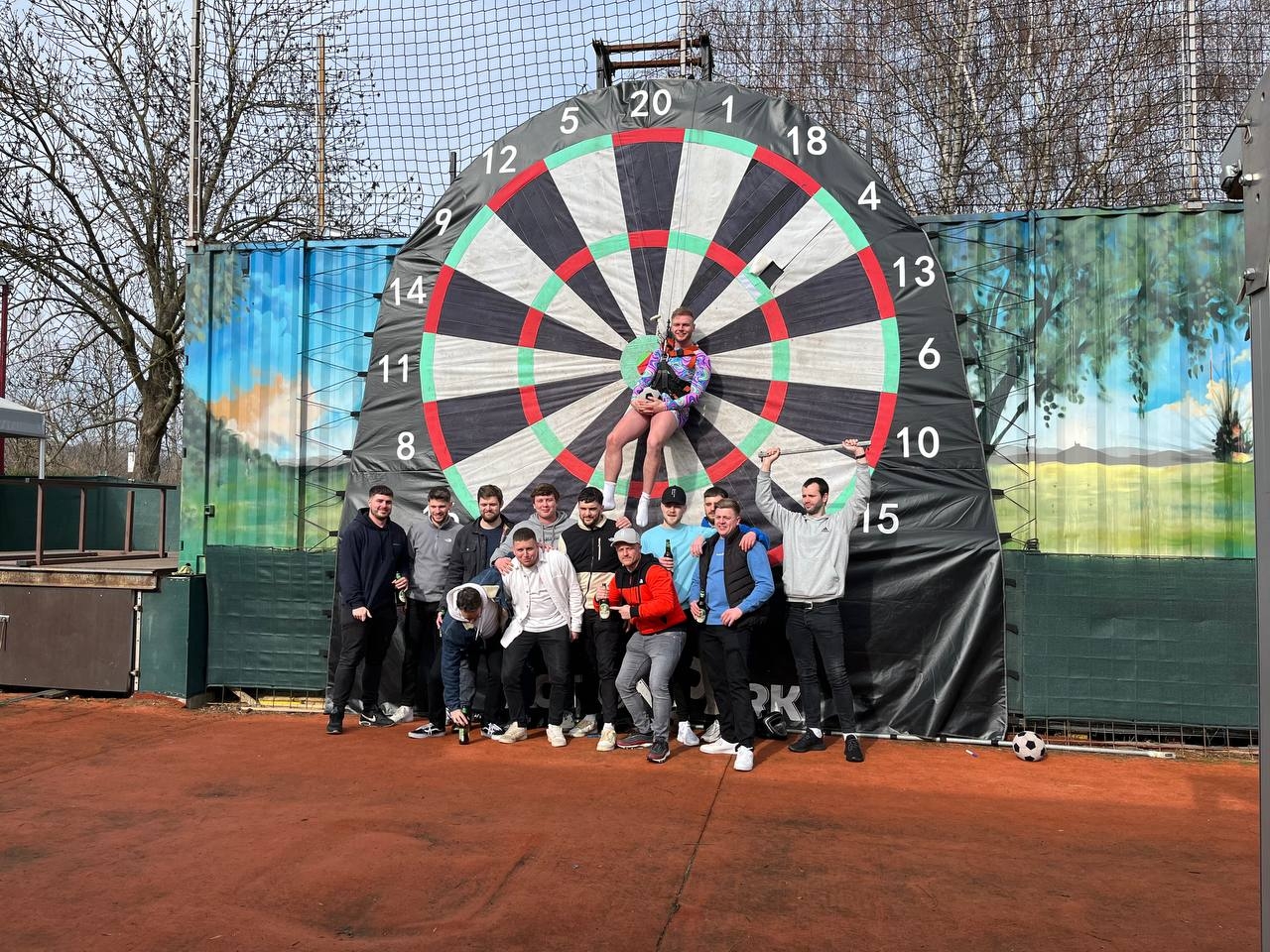 Looking for a stag party activity in Prague that’s sporty, original, and full of laughs? Try your hand (or foot!) at Foot-Darts — a crazy outdoor game where you kick velcro footballs at a giant inflatable dartboard. It’s fun, silly, and the perfect challenge for your group.
