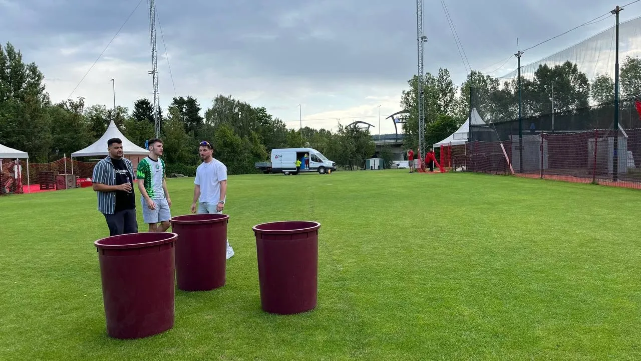 In traditional Beer Pong, players use small cups. In Giant Beer Pong, you play with large barrels on each side, making the game bigger, more exciting, and perfect for stag parties, birthdays, or team-building events.