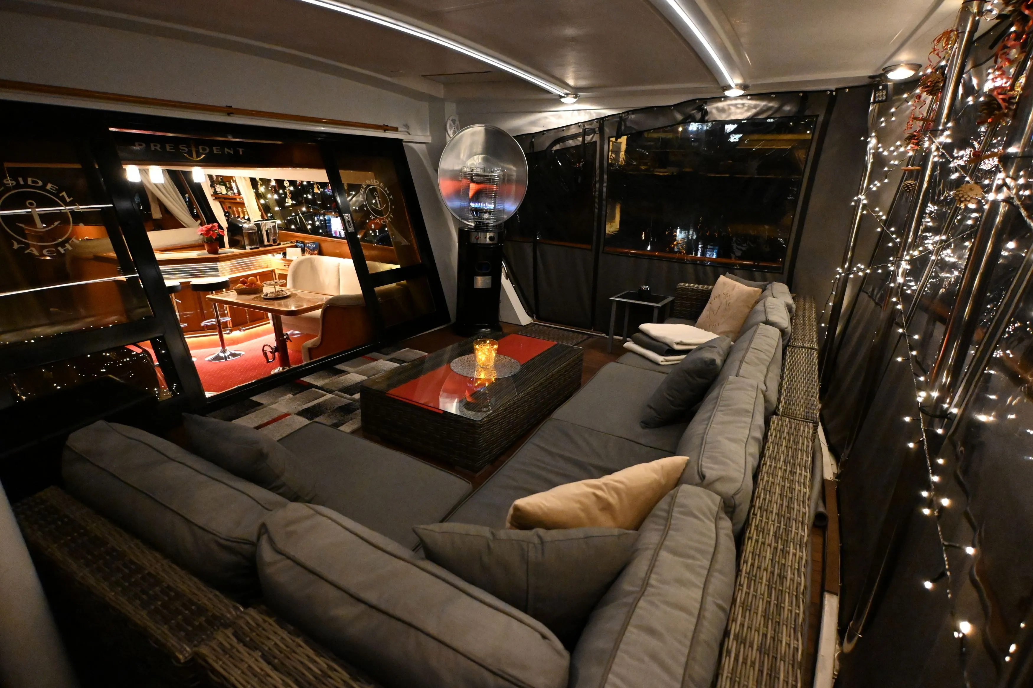 Your private yacht features a fully equipped bar, a comfortable indoor saloon, and three spacious outdoor decks — perfect for chilling, toasting, and celebrating with your mates.